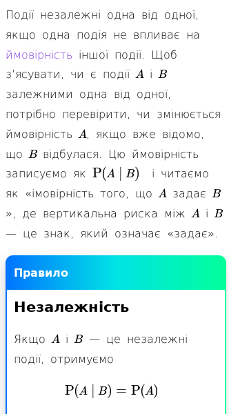 >Імовірність і комбінаторика>Правила теорії ймовірності