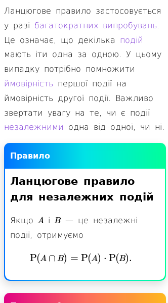 • Ланцюгове правило для умовних імовірностей